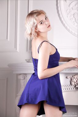 Симпатичная девушка с маленькими сиськами разделась, оставив только гольфы. Она мастурбировала письку на кресле и на пуховом белом покрывале, показывая свои красивые прелести.